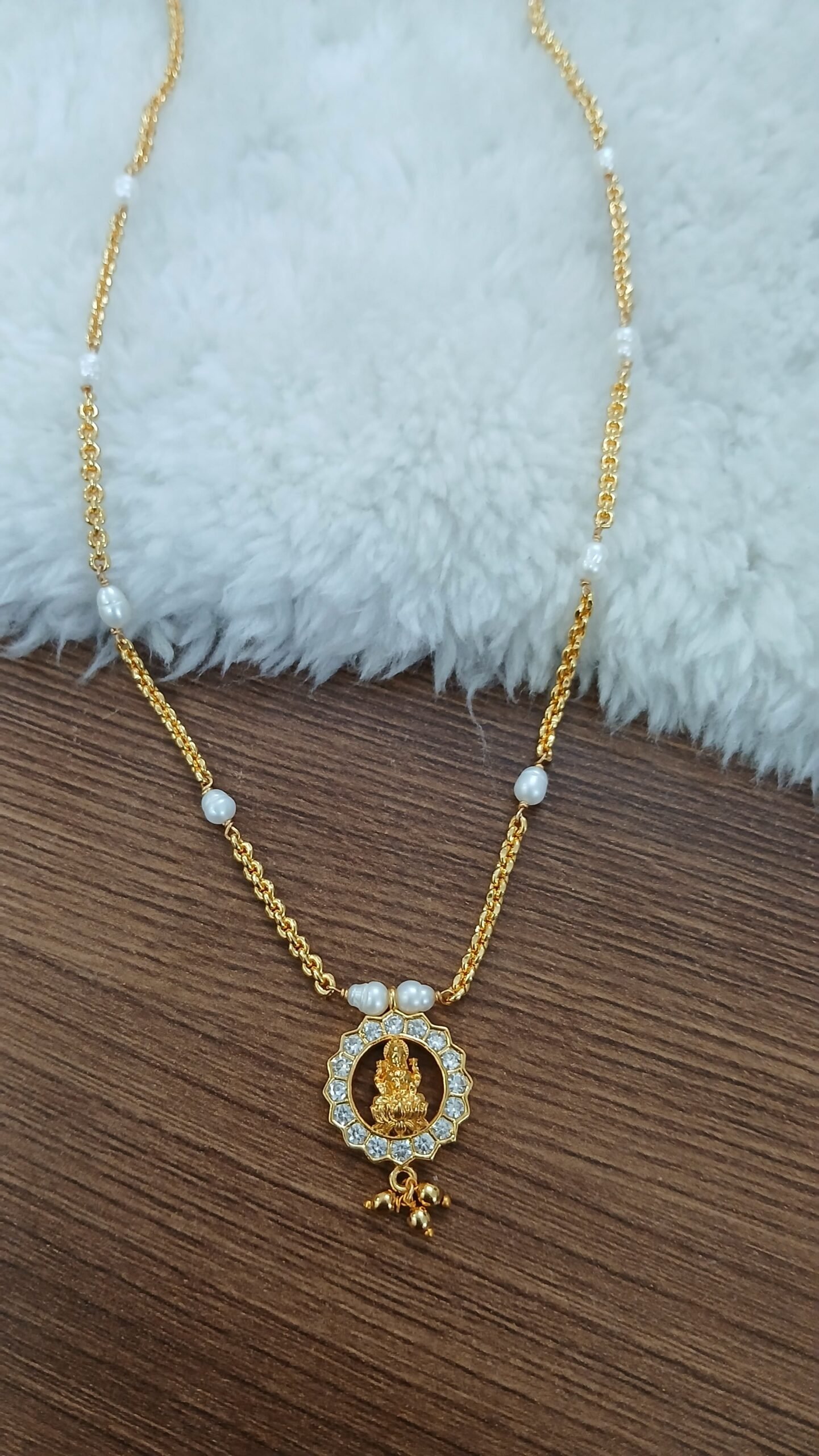 Simple gold copy Lakshmi pendant with real fresh water pearls chain