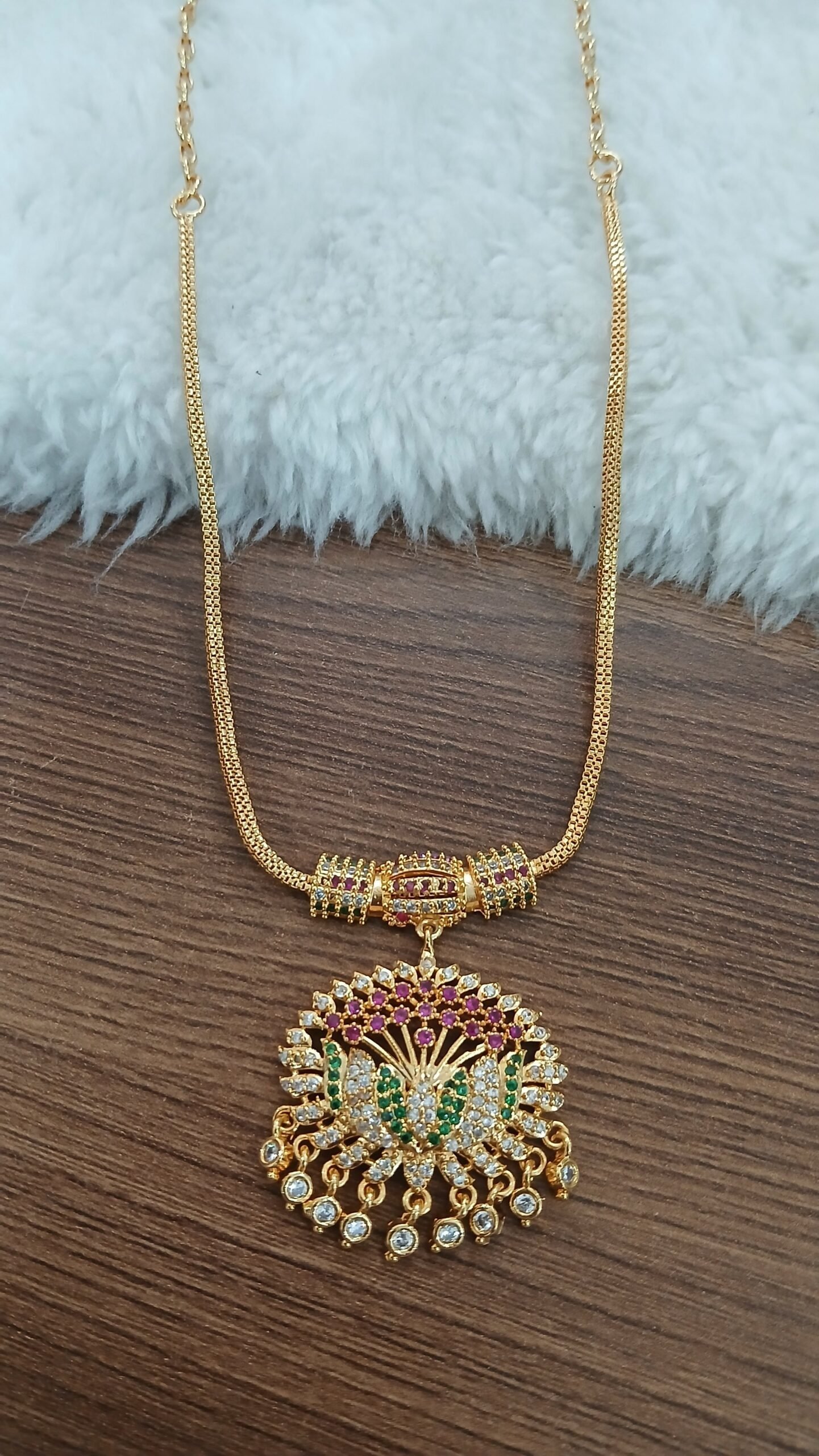 Simple Multi stones Lotus pendant with Naan chain (Micropolish)