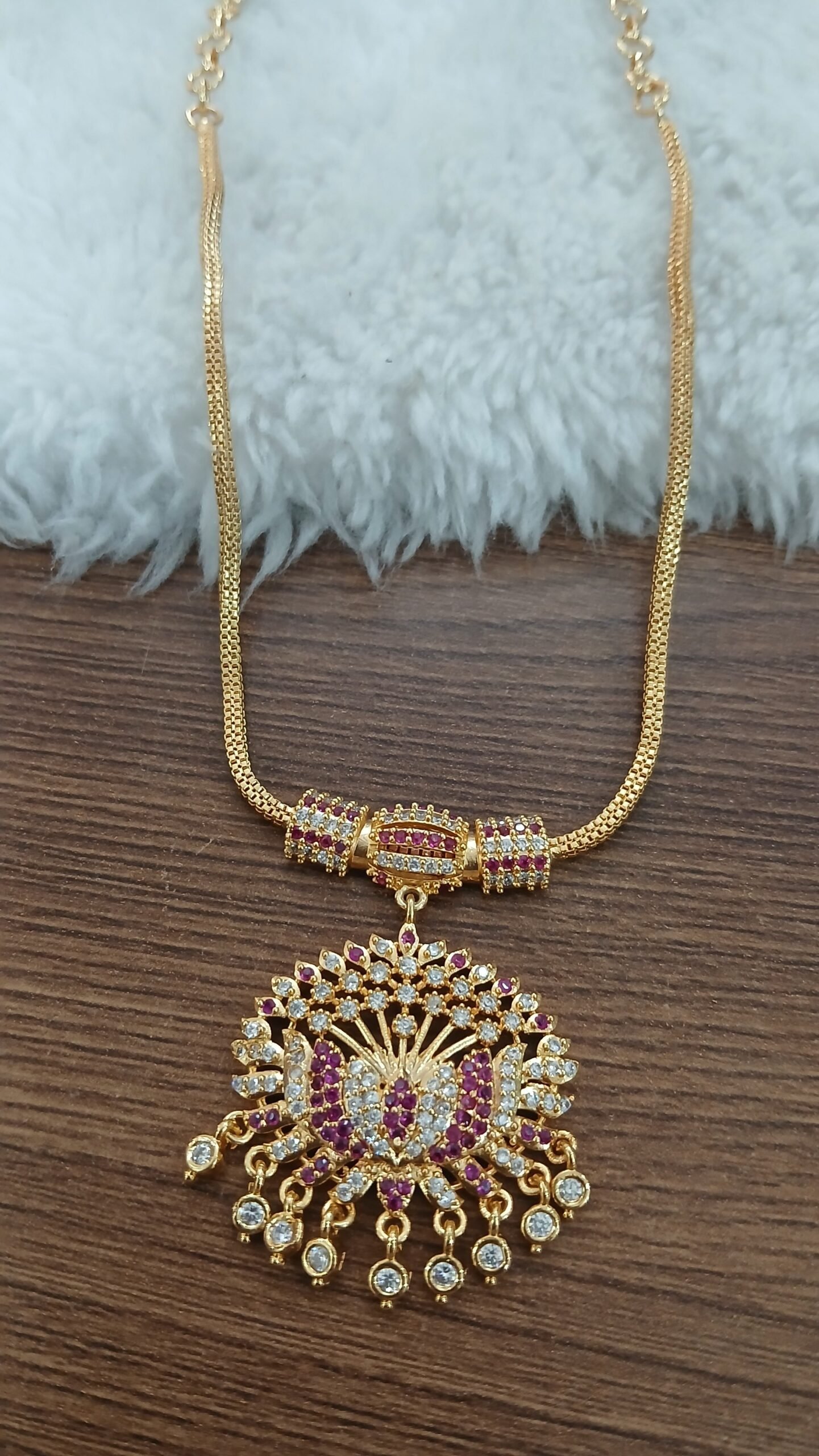 Be the first to review “Simple pink and white stones Lotus pendant with Micropolish naan chain” Cancel reply