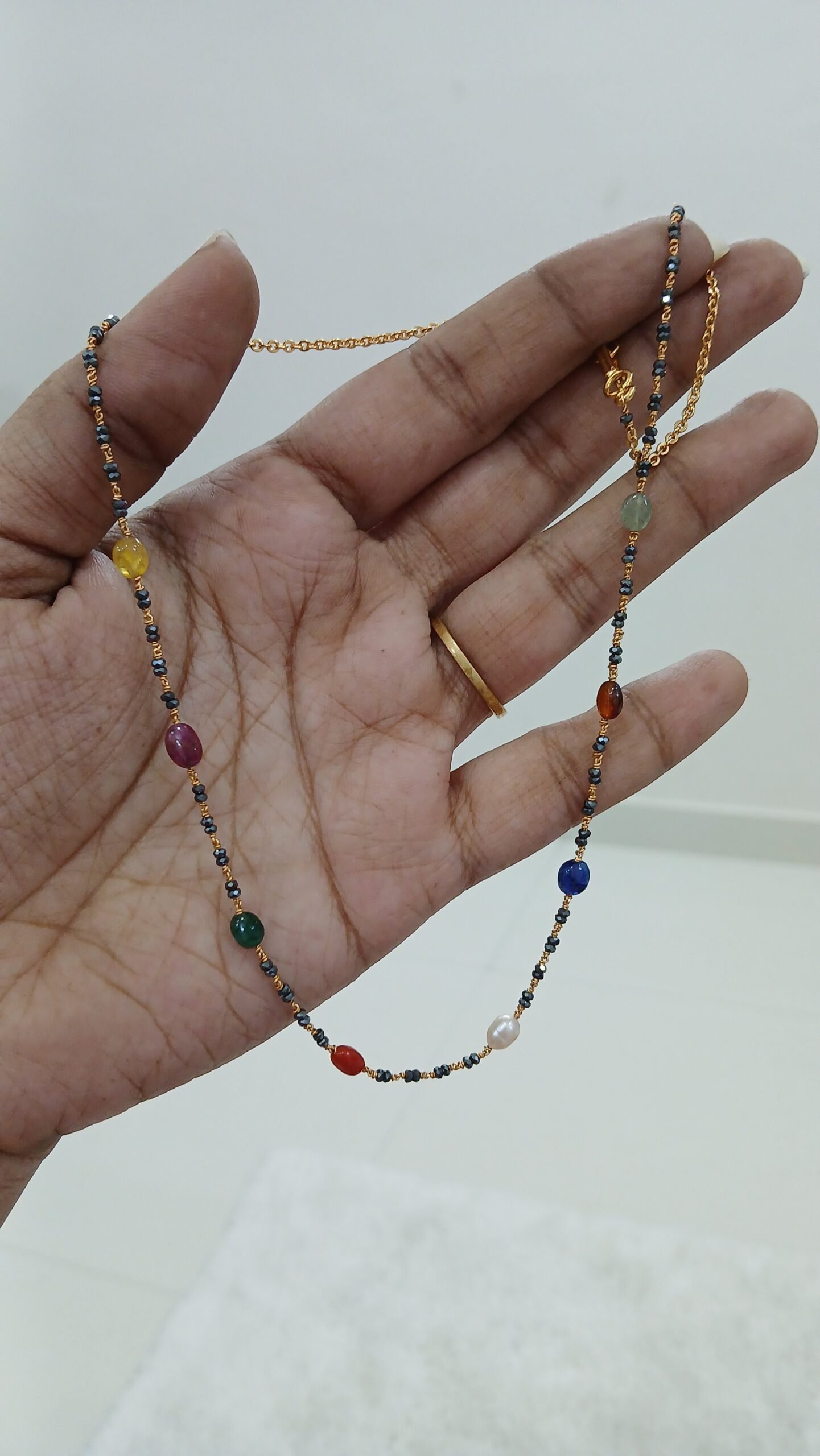 Simple Real Navrathna chain with kattu theega & Black diamonds