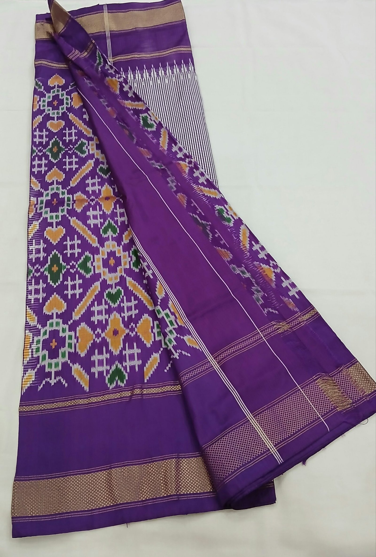 Small checks violet double warp pattu saree ( full ikkat weaving pallu and blouse )