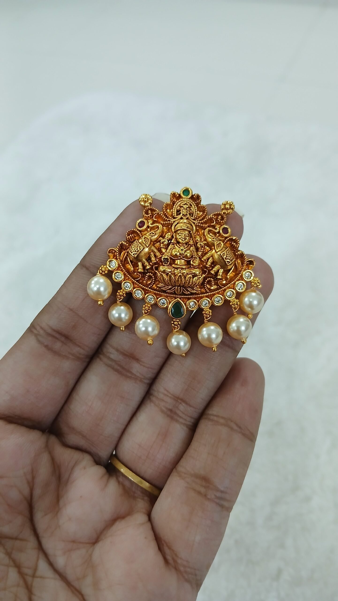 Small size Gold nakshi pendant with Lakshmi devi & Elephant