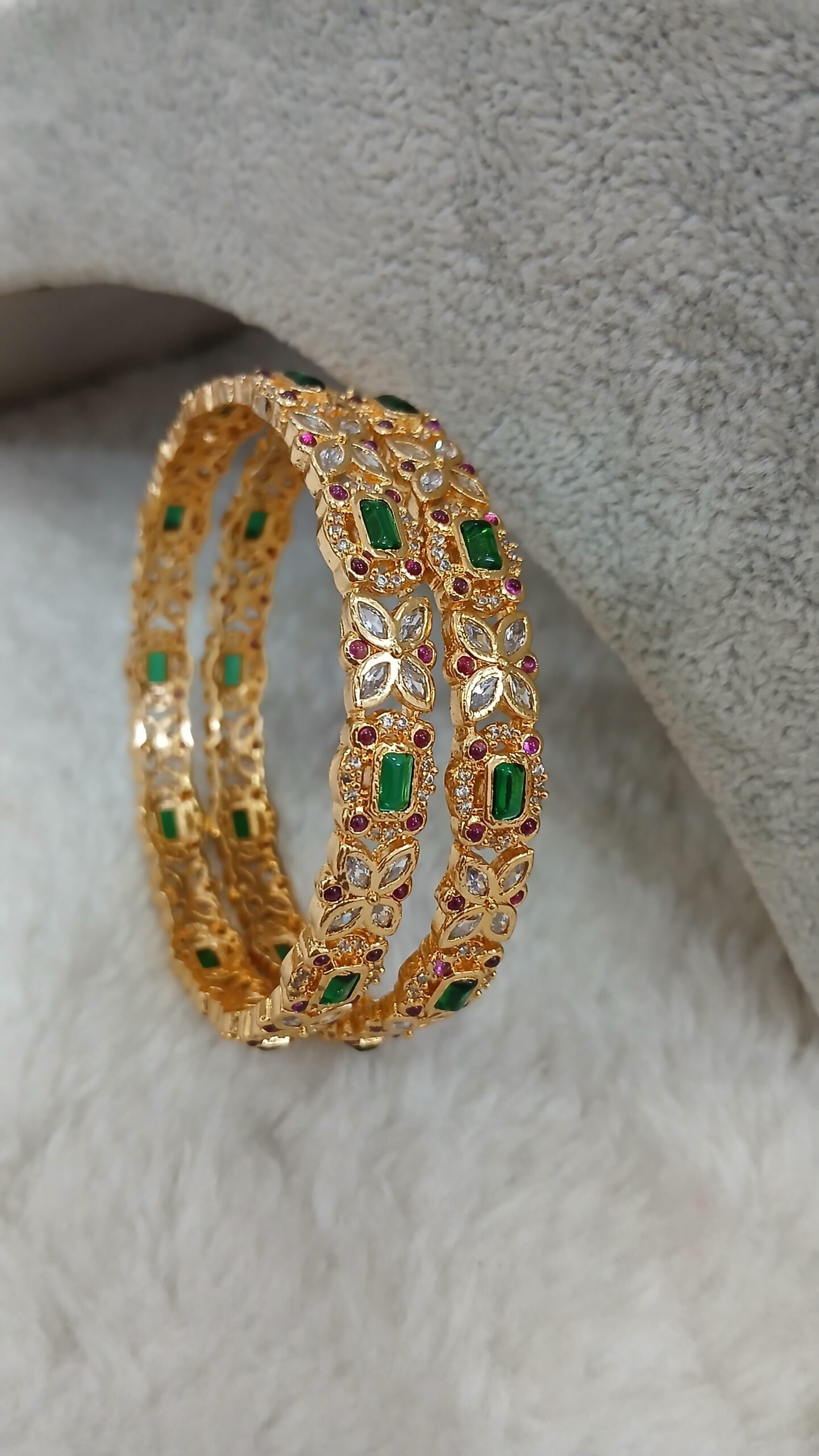 Uncuts with green stone design bangles