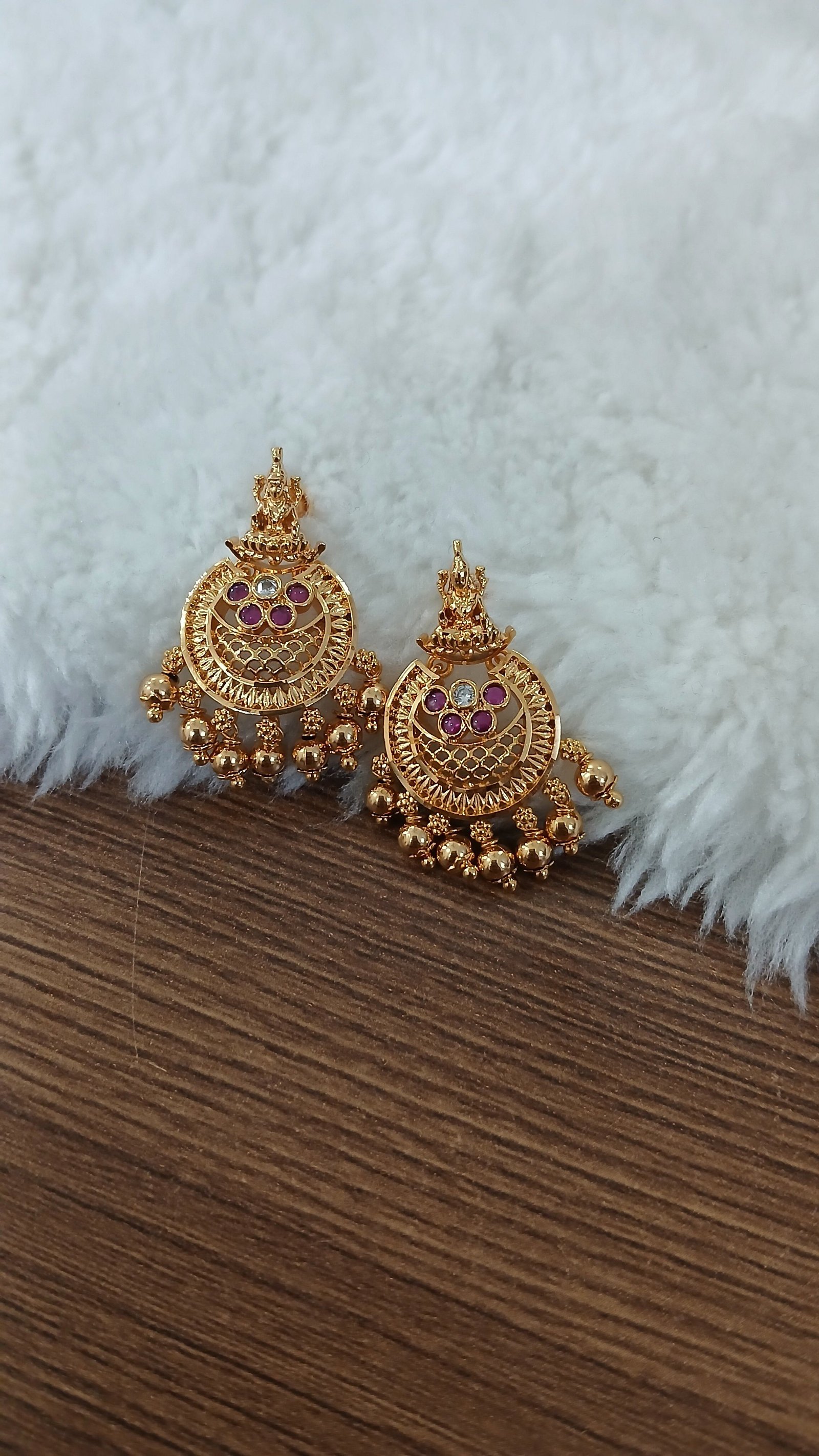 White & pink stone Lakshmi chandbali ( Micropolish )