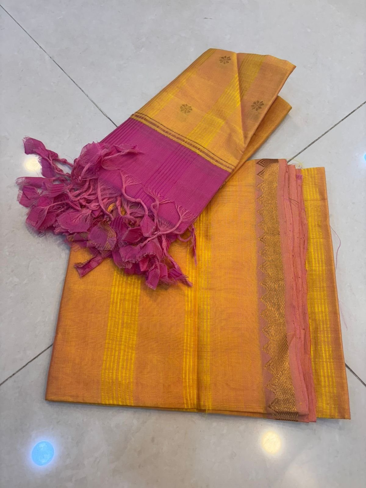 Be the first to review “Yellow & Pink with zari border” Cancel reply